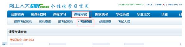 2、考場(chǎng)查詢方法:個(gè)性化學(xué)習(xí)空間—課程考試—考場(chǎng)查詢