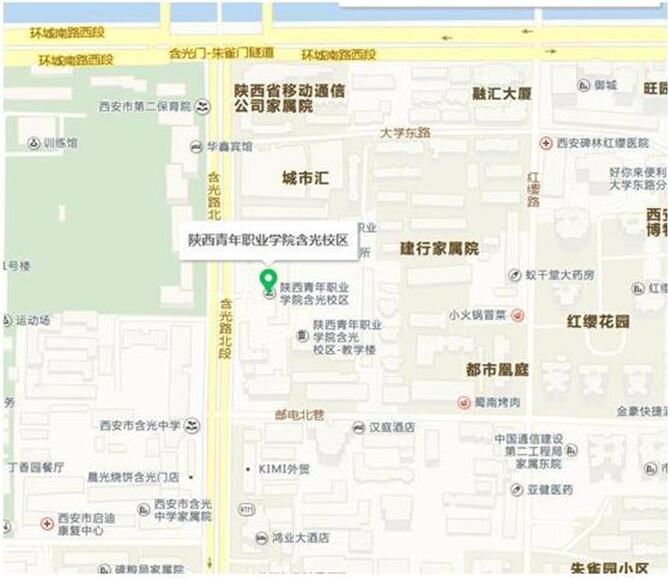 三、考試地點(diǎn):西安市碑林區(qū)含光北路155號(hào)陜西青年職業(yè)學(xué)院(如下圖)